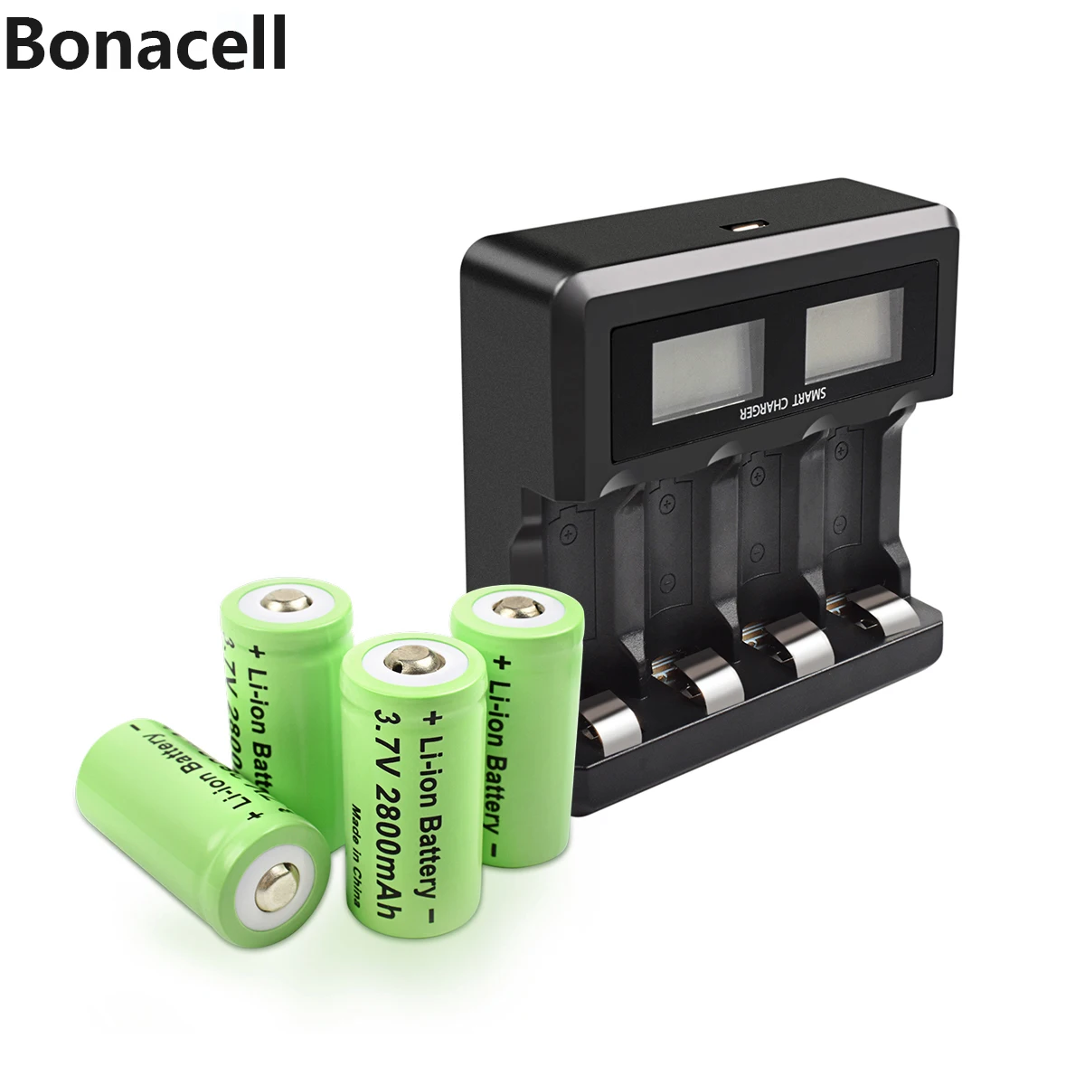 Special Offer of 2800mAh bonacell Rechargeable 3.7V Li-ion 16340 Batteries CR123A Battery For LED Flashlight Travel