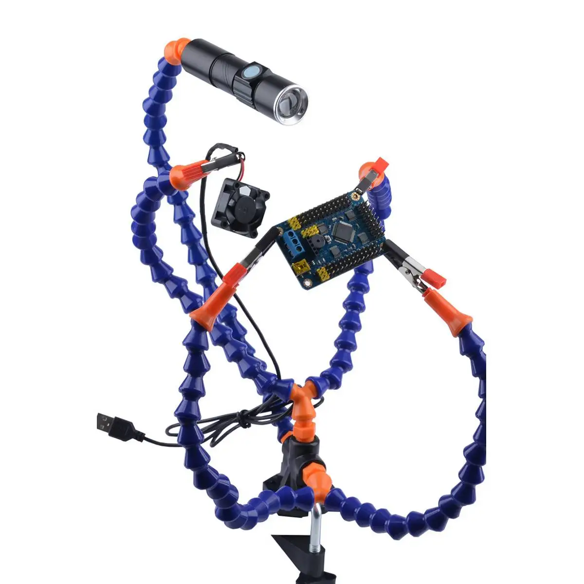 Buy Third Hand Soldering PCB Holder Tool Five Flexible Arms Helping Hands With USB Charge Mini LED Flas Right Here and Right Now Just for USD US $17.19, Price will be rise up at any time without notification and I cant guaranted that the stock is still available tommorow or next hour. So Please Save It Now!