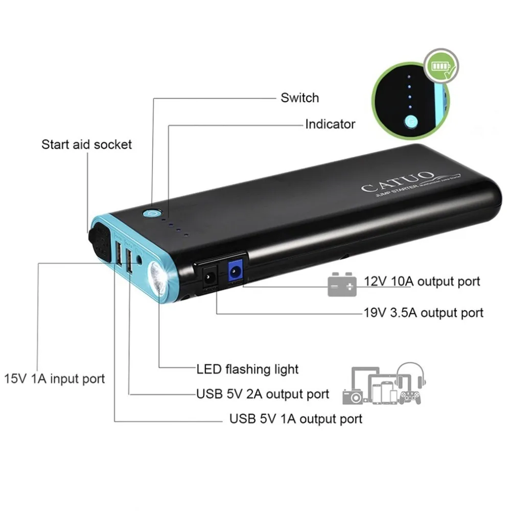 .image for CATUO 20000mAh Portable Car Jump Starter Battery Booster with USB Power Bank LED Flashlight for Tru